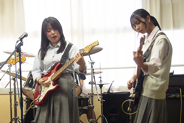 毎月のように校内ライブを実施している軽音楽部。40名近い部員がそれぞれバンドを編成し、最近では全国大会にも出場しています。