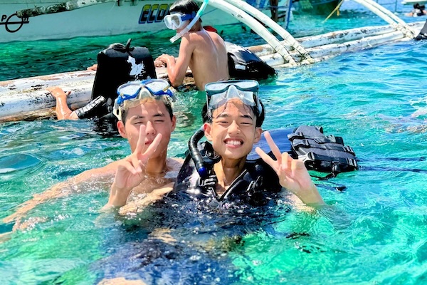 8月3日から16日までの2週間、現地に滞在し、部屋割りは異学年2人組としました。平日は8時間の英語授業(マンツーマン英語7時間+グループ活動1時間)、のマンツーマン英語授業、週末にはセブシティ散策やオランゴ島でのシュノーケリング、小学生との交流会など、異文化体験も豊富に用意しました。渡航前後には専用の英語学習プログラムを組み合わせ、現地での学習効果を最大化し、確実な英語力向上を目指しました。
