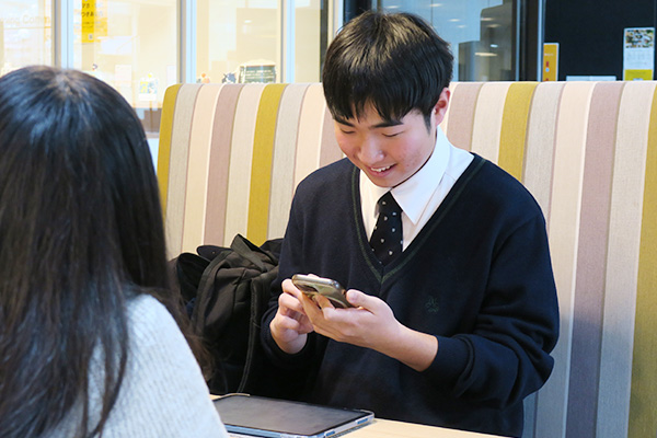初回となるこの日は、RINGSに参加する情報科の大学生と互いの自己紹介からスタート。チーム間での連絡ツールの設定や今後の進め方などについて確認しあいました。参加するN.S.さんは特進コース1年生。初回、しかも初めて会う大学生と話すというだけでドキドキ状態の中、参加しようと思ったきっかけや意気込みについてうかがいました。