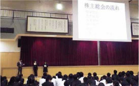 起業体験プログラムとは、郁秋祭に行われる模擬店出店に向けて、社会科の授業と連動して行う擬似的な社会体験です。生徒たちが株式会社を設立し、起業・登記・出店・株主総会までを行い、「社会の中での自分の役割を認識する」ことを目的としています。