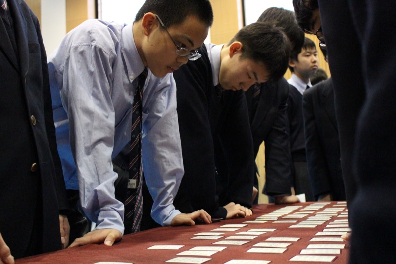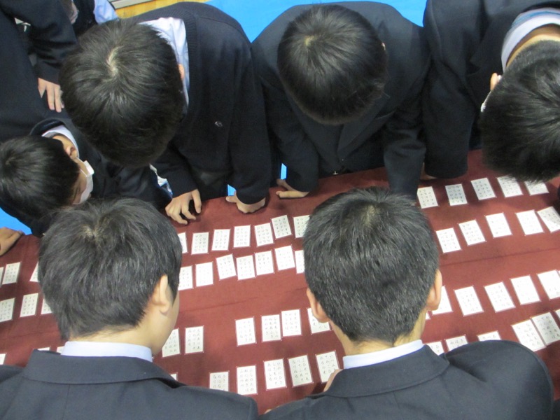 真剣に札を見つめます