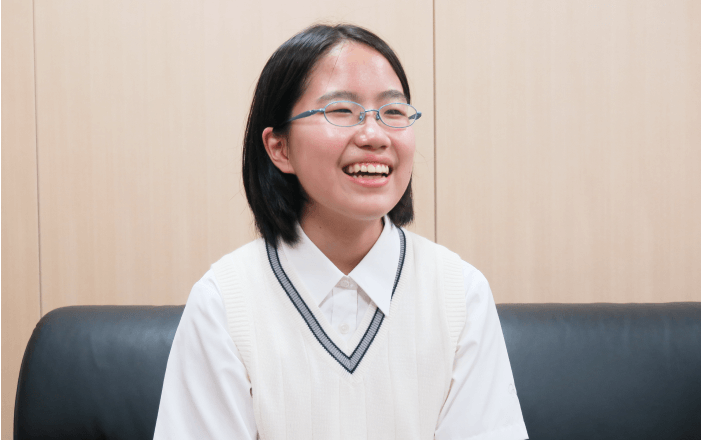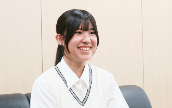 オープンデーに参加して化学部の実験を体験し、英語に力を入れていることにも魅力を感じて入学。社会課題探究コースで2025年12月より約3か月間フィンランドに留学予定。