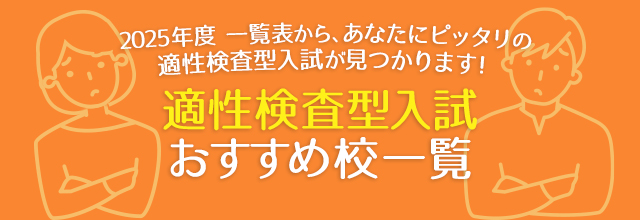 2025年度 一覧表から、あなたにピッタリの適性検査型入試が見つかります! 適性検査型入試おすすめ校一覧 適性検査型入試はどこの私立を受ければいいんだろう…?